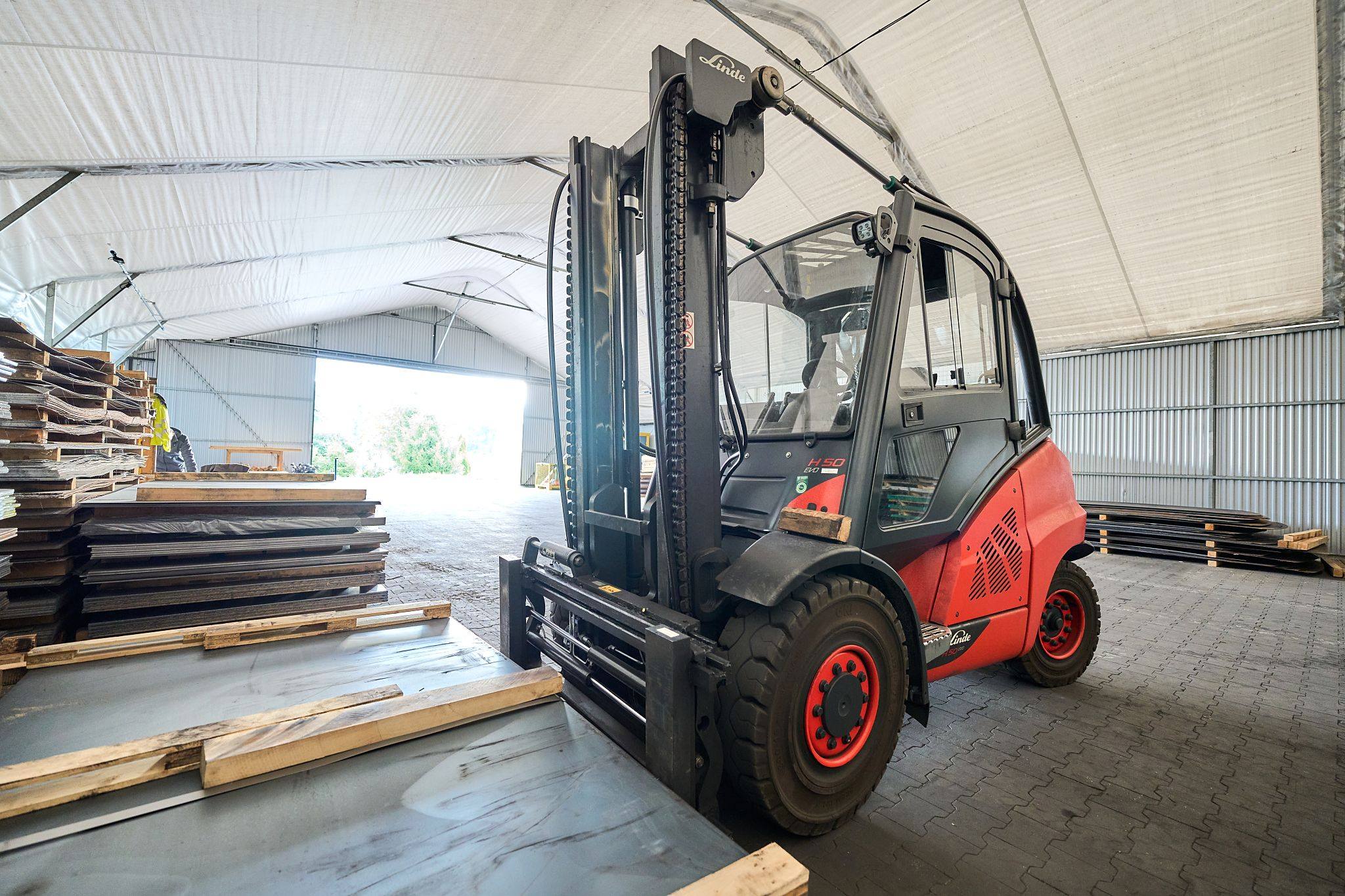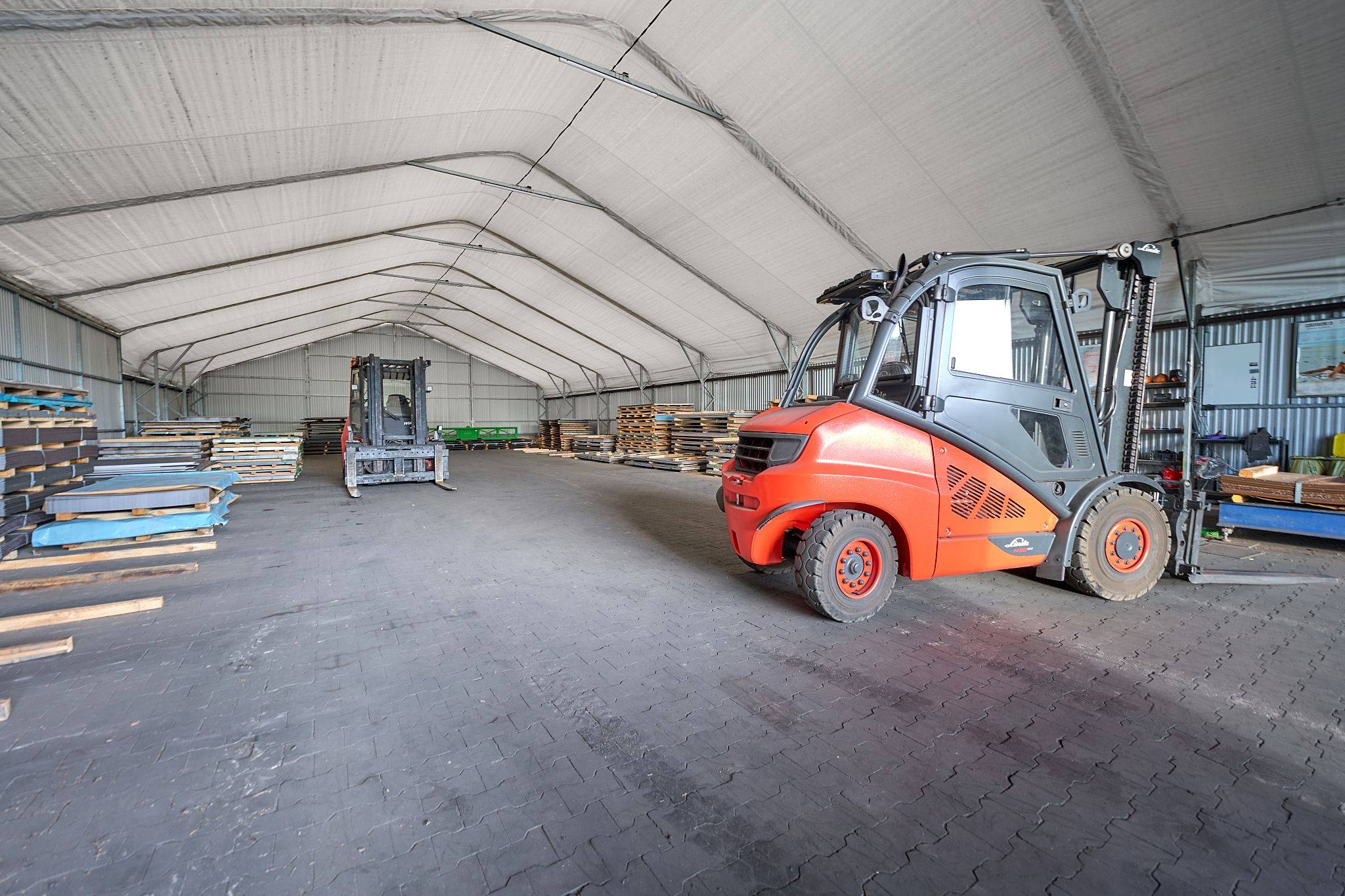 Wyroby hutnicze składowane są w nowoczesnym, zadaszonym magazynie.